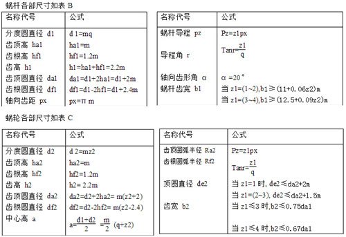 有關(guān)標(biāo)準(zhǔn)模數(shù)m與標(biāo)準(zhǔn)分度圓直徑d1的搭配值及對(duì)應(yīng)的蝸桿直徑系數(shù)參照表A。
